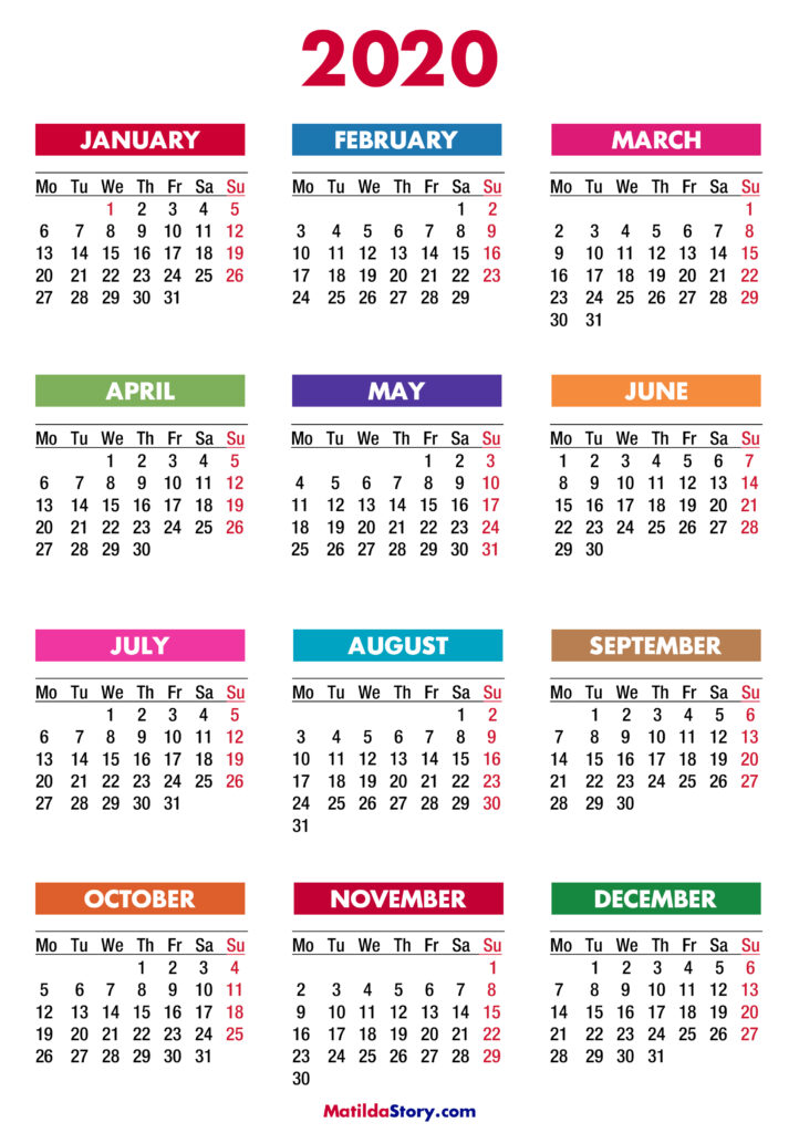2020 Calendars• High Resolution Calendars• High Resolution Calendars Monday Start 2020 Calendar Printable Free, Colorful – Monday Start 09/06/202009/06/2020