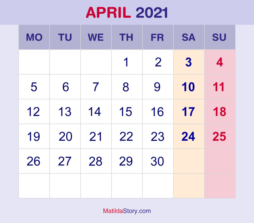 2021 Calendars• Calendars• Monthly Calendars• Monthly Calendars Monday Start April 2021 Monthly Calendar, Monthly Planner, Printable Free – Monday Start 02/06/202002/06/2020