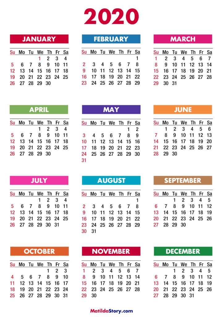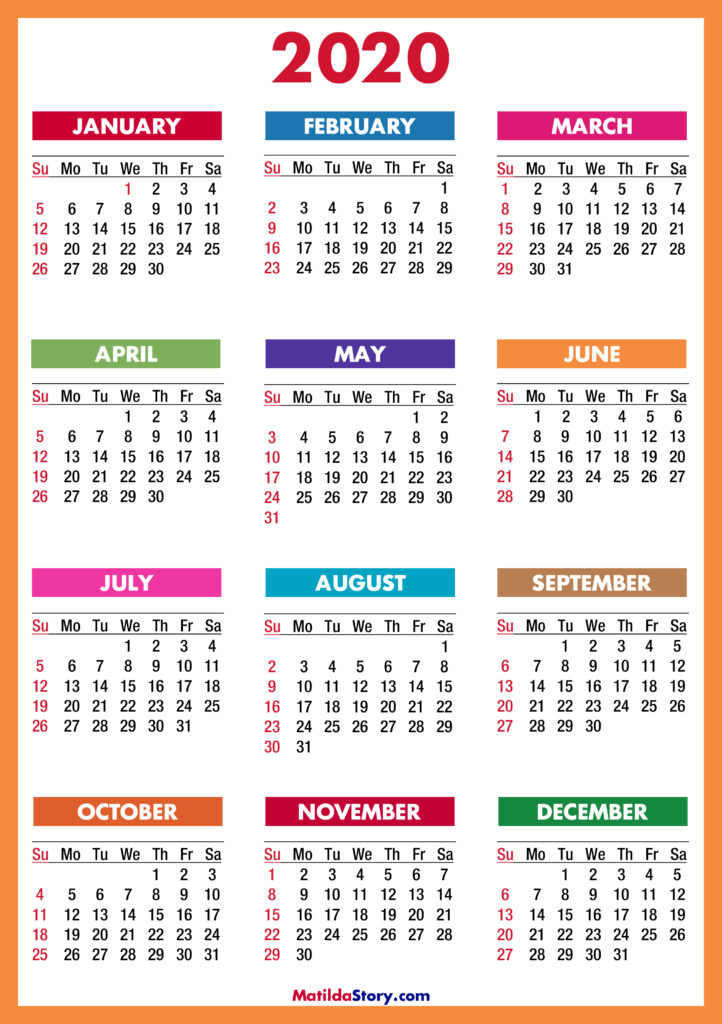 2020 Calendars• Calendars• High Resolution Calendars• High Resolution Calendars Sunday Start 2020 Calendar Printable Free, Colorful – Sunday Start 09/06/2020