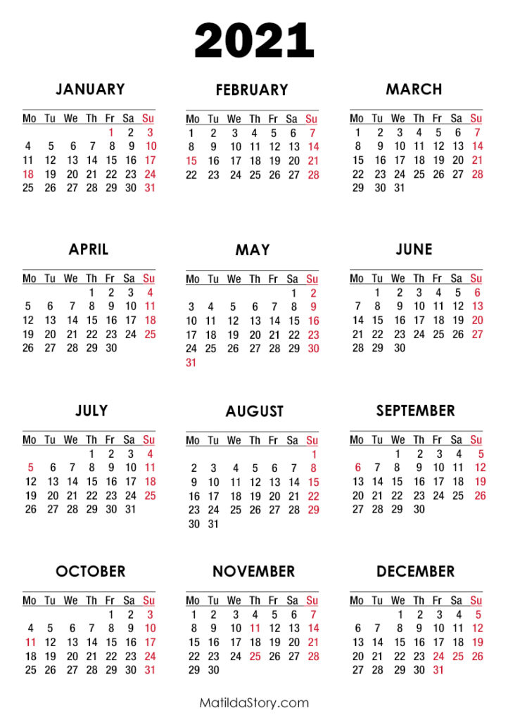 2021 Calendars• Basic Calendars Monday Start• Calendar with Holidays Monday Start• Calendars 2021 Calendar with Holidays, Printable Free, White – Monday Start 02/05/202002/05/2020