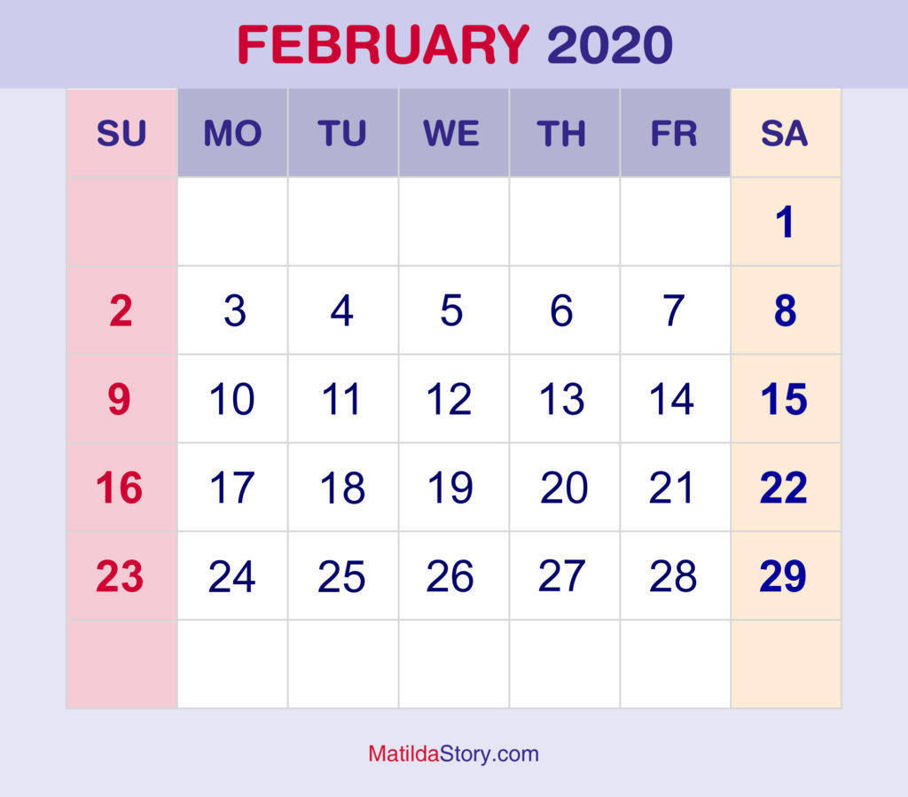 2020 Calendars• Calendars• Monthly Calendars• Monthly Calendars Sunday Start February 2020 Monthly Calendar, Monthly Planner, Printable Free – Sunday Start 02/06/202002/06/2020