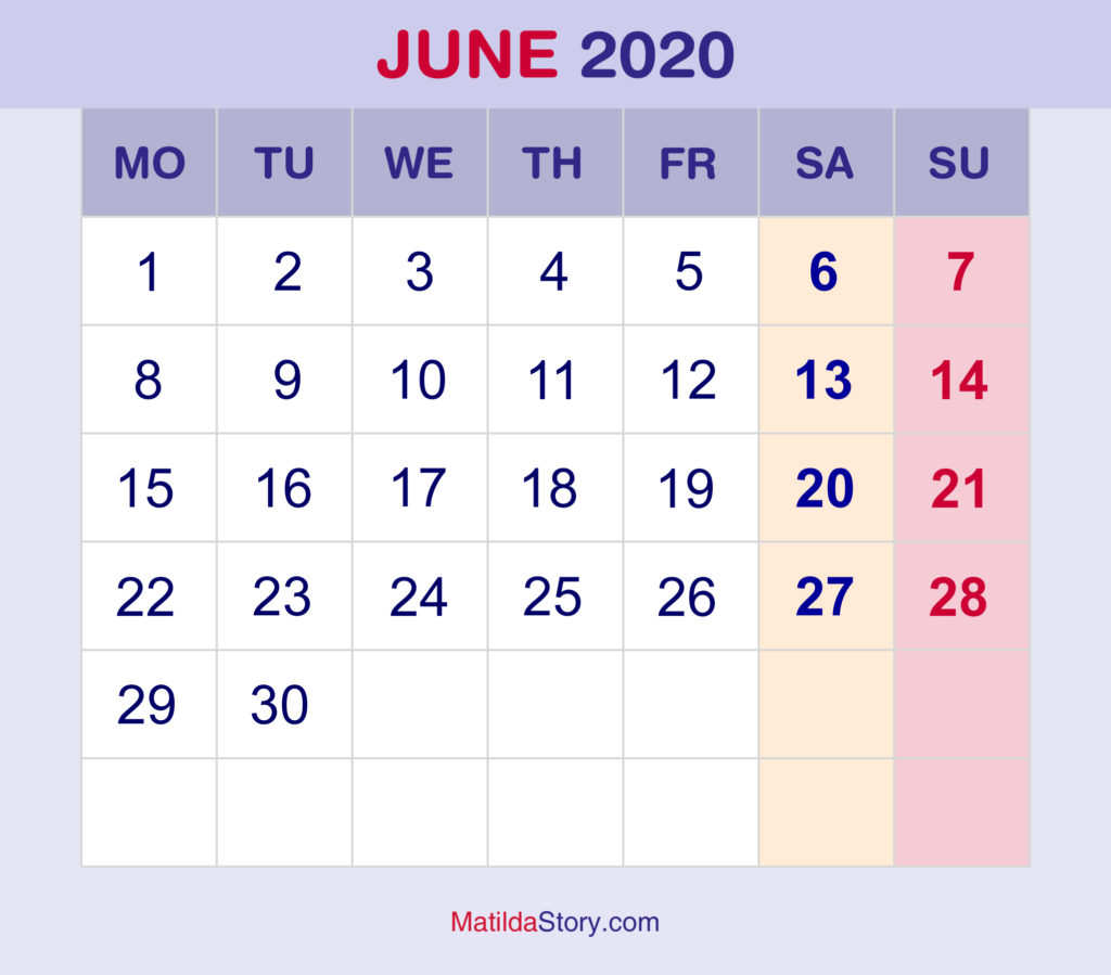 2020 Calendars• Calendars• Monthly Calendars• Monthly Calendars Monday Start June 2020 Monthly Calendar, Monthly Planner, Printable Free – Monday Start 02/05/202002/06/2020