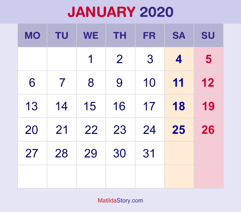 2020 Calendars• Calendars• Monthly Calendars• Monthly Calendars Monday Start January 2020 Monthly Calendar, Monthly Planner, Printable Free – Monday Start 02/05/202002/06/2020