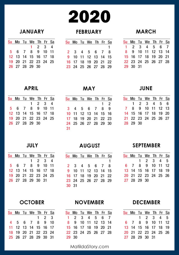 2020 Calendars• Basic Calendars Sunday Start• Calendars 2020 Calendar Printable Free, Blue – Sunday Start 02/05/202002/05/2020